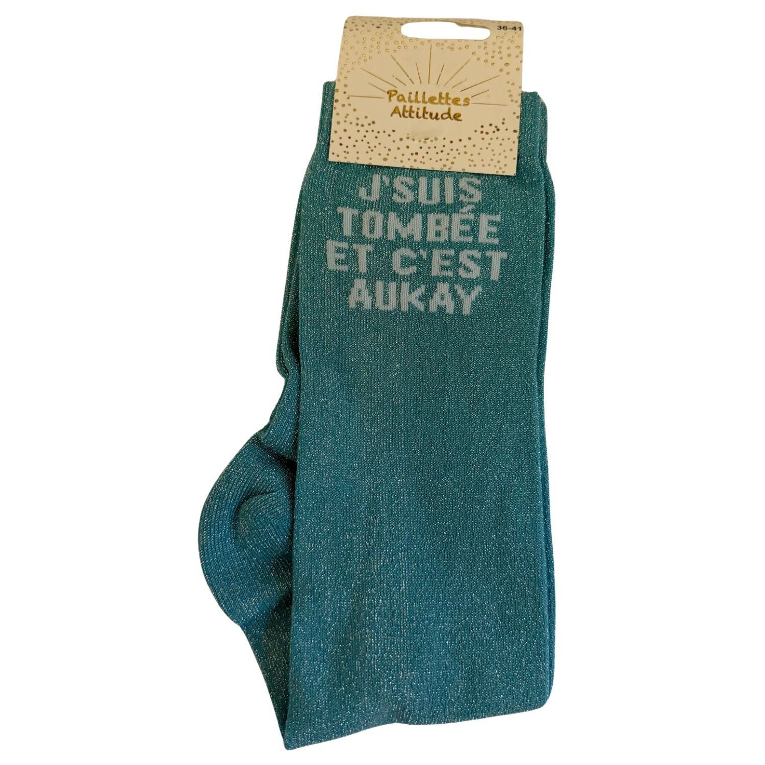 Paillettes Attitude – Chaussettes d’équitation « J’suis tombée et c’est aukay »